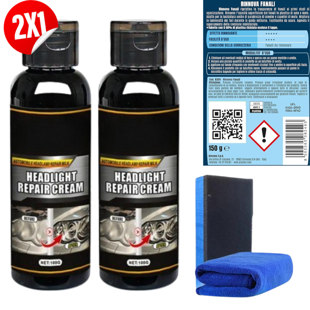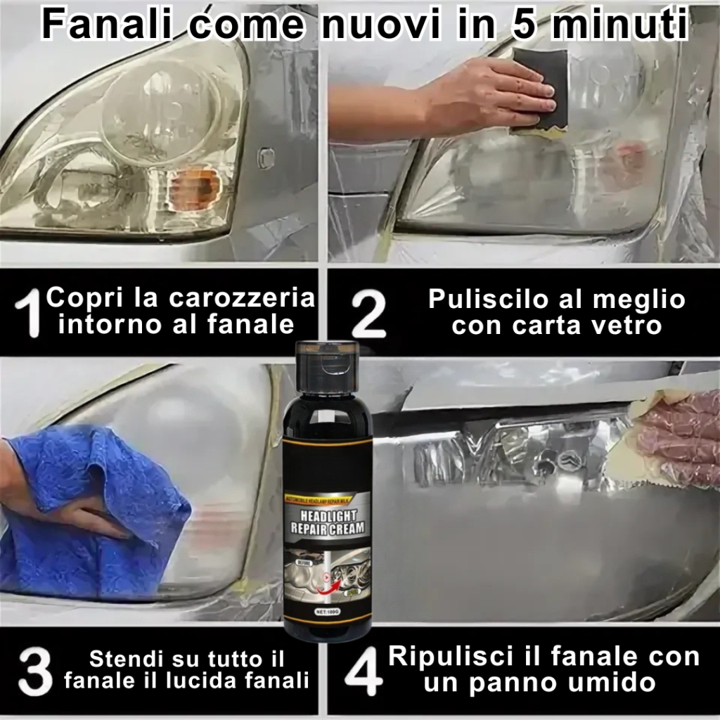 Il nostro prodotto ridà nuova vita hai tuoi fari ossidati, eliminando l’ingiallimento e l’opacità, riportandolo trasparente e brillante idratandoli dal loro stato secco.