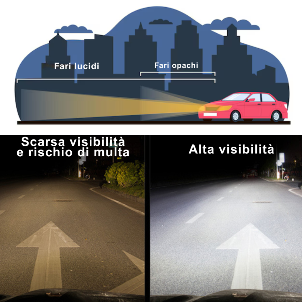 Guidare di notte con i fari ingialliti non è solo pericoloso, è un rischio concreto per te, i tuoi cari aumentando il rischio di intendenti e di uscire fuori strada.