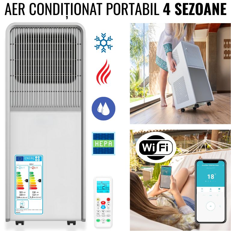 AER CONDIȚIONAT PORTABIL 4 SEZOANE, WI-FI FĂRĂ TUB