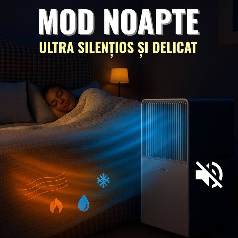 Activează modul de noapte: va reduce zgomotul la minimum (sub 27 de decibeli), va ridica paletele de ventilație în sus pentru a evita jetul direct de aer și pentru a îmbunătăți circulația acestuia în cameră.