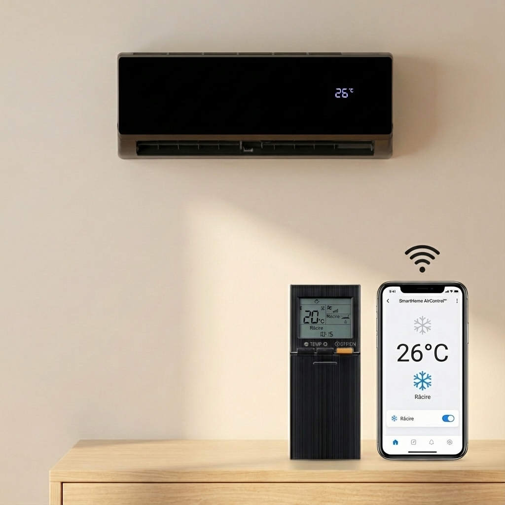 Gestionezi climatul de pe canapea sau din afara casei: pornire programată, mod noapte, reglare fină a temperaturii în câteva atingeri.