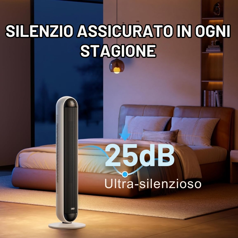 Non c’è niente di più fastidioso di un ventilatore o riscaldatore rumoroso, che disturba il sonno o le conversazioni. ClimaVerse è progettato con tecnologia TurboSilent, producendo solo 25 dB anche alla massima potenza.