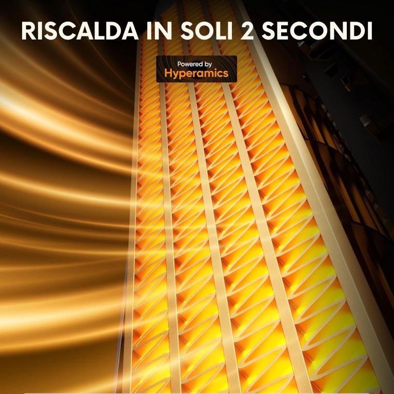 Con ClimaVerse, il calore arriva in soli 2 secondi grazie all’elemento PTC avanzato, diffondendosi rapidamente fino a 20 metri.