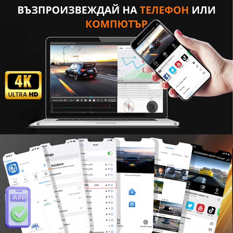 Записва всичко, което се случва около автомобила ти – денем и нощем – с ултра ясни 4K изображения.