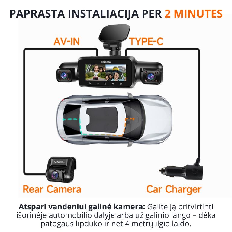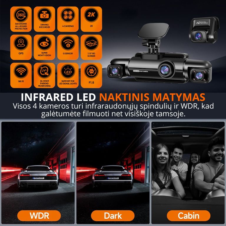 Fiksuoja viską, kas vyksta aplink jūsų automobilį – dieną ir naktį – itin ryškiu 4K formatu.