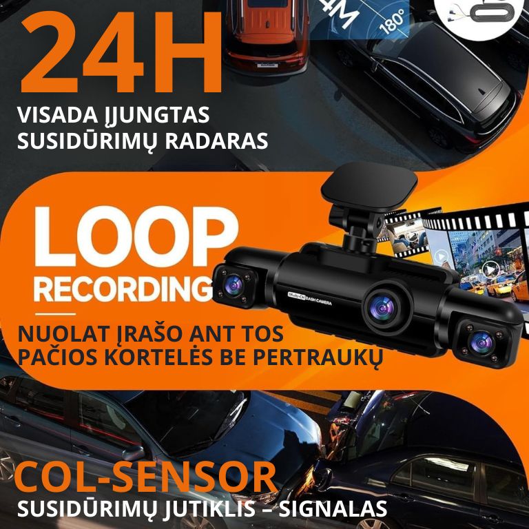 Micro SD kortelė automatiškai perrašo senesnius įrašus (loop režimu).