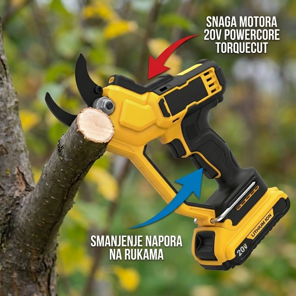 Kompaktne i uravnotežene, smanjuju napor obrezivanja za više od 90% u usporedbi s ručnim škarama i režu grane do 58 mm promjera jednim klikom.
