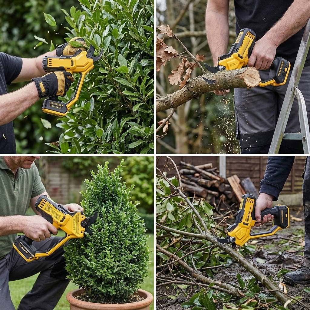 Akcija rezanja je glatka i kontrolirana, tako da ne morate trgati ili forsirati granu kao s ručnim škarama. Oštrica s premazom smanjuje trenje, ne lijepi se za smolu i zadržava glatkoću čak i na vlažnom drvu. Na gustim živicama, granama grmlja ili malim deblima uvijek dobijete čist rez koji pomaže biljci da bolje zacjeljuje. Kompaktni dizajn omogućuje vam da se provučete između grana i radite na teškim mjestima bez uvijanja.