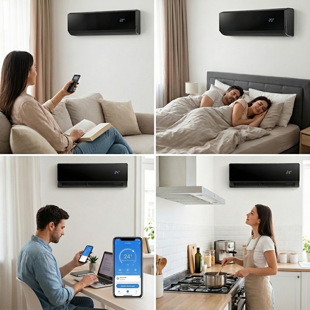 A kanapéról vagy házon kívülről is kezelheted a klímát: programozott bekapcsolás, éjszakai mód, finom hőmérséklet-szabályozás néhány érintéssel.