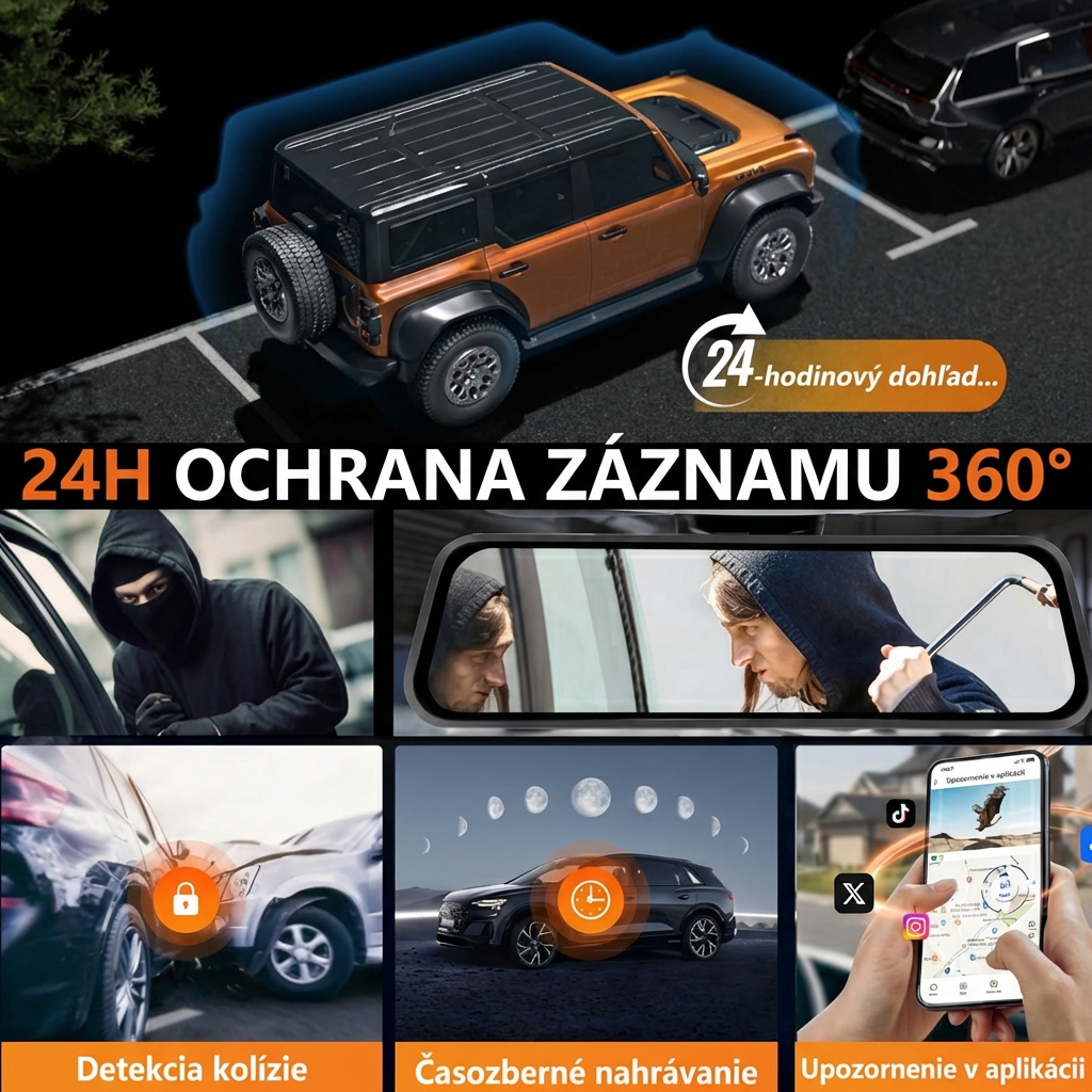Kontrolujte svoje auto v 360° 24 hodín denne a chráňte sa s nahratými dôkazmi v prípade vandalizmu alebo kolízií